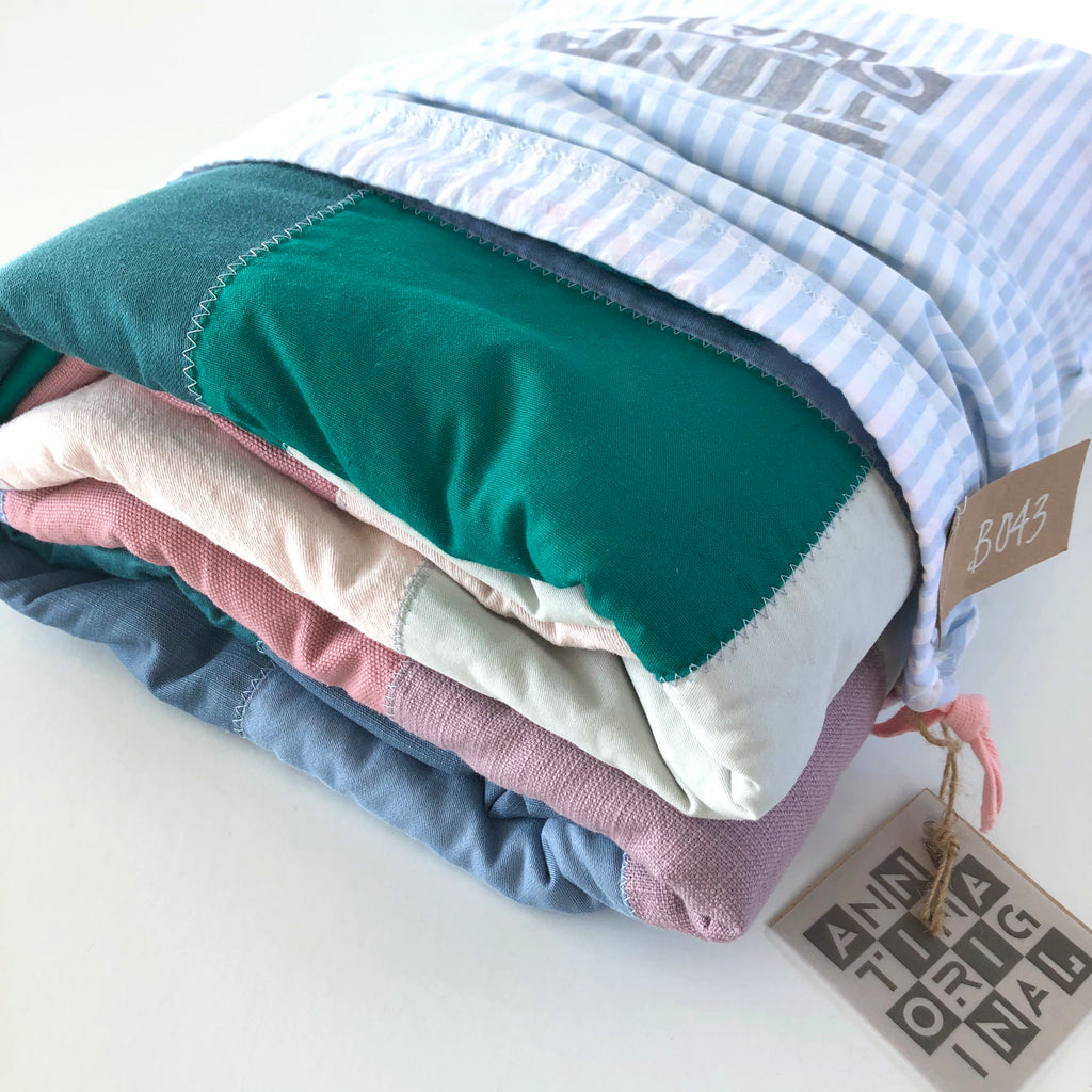 ★ the blocks are a mix of natural materials backed with a cotton cloth and filled with a batting for comfort and warmth (the batting is made from recycled PET bottles and plastic packaging ♻️)