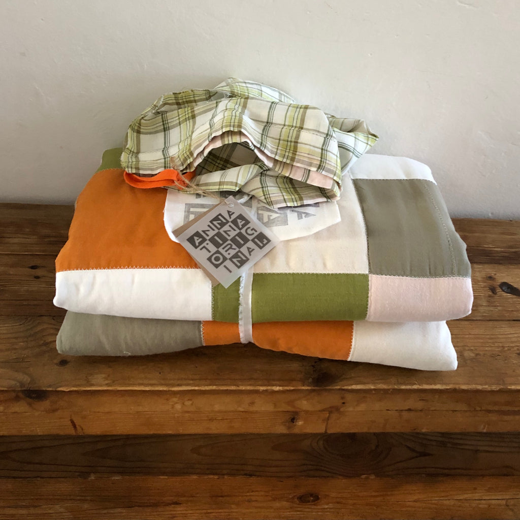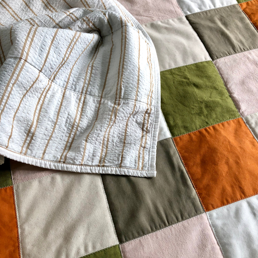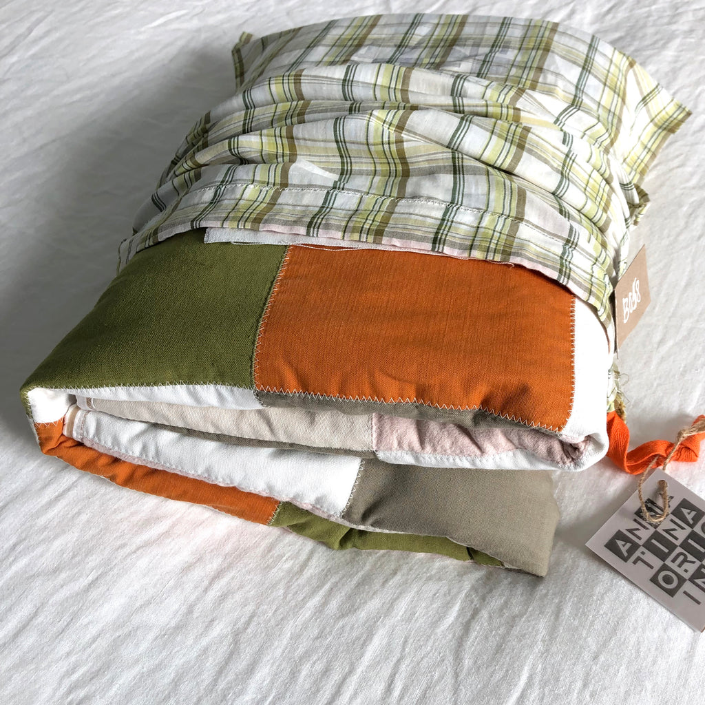★ the blocks are a mix of natural materials backet with a cotton cloth and filled with a batting for comfort and warmth