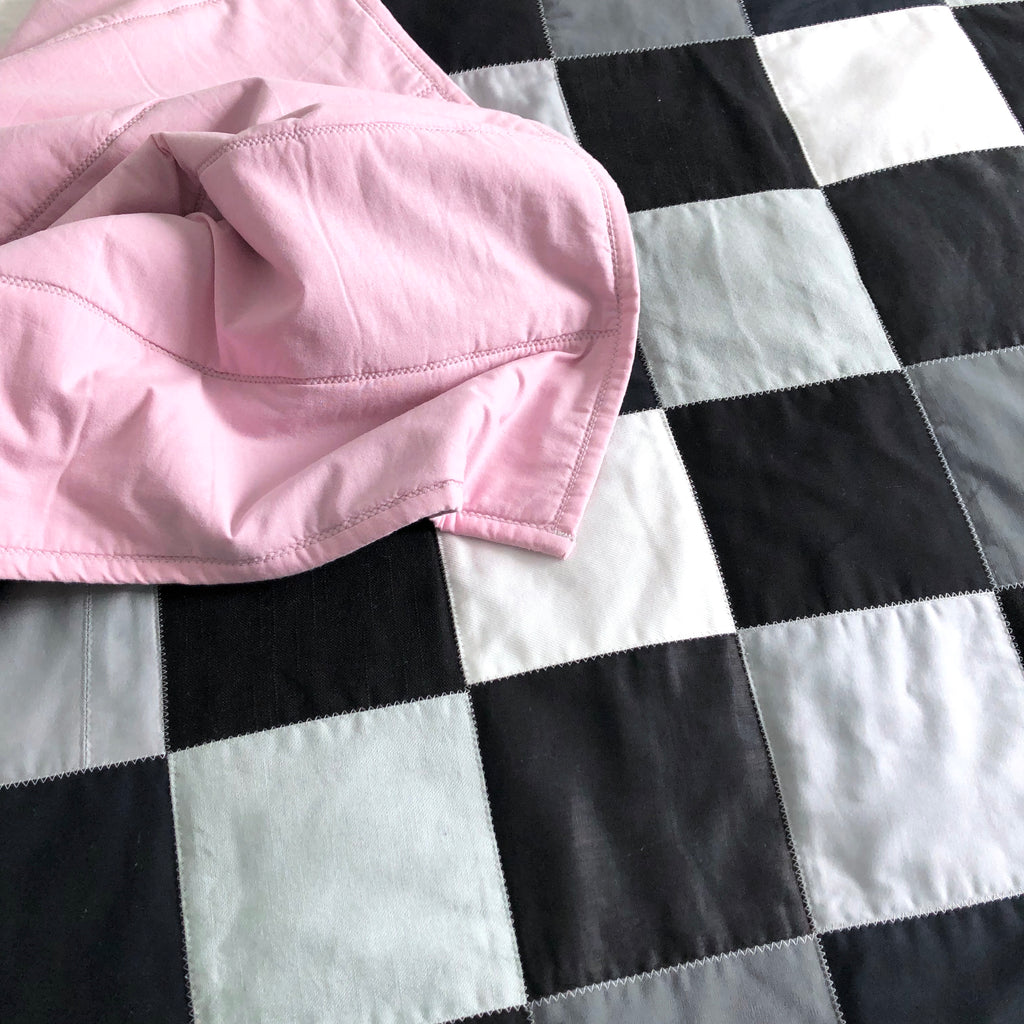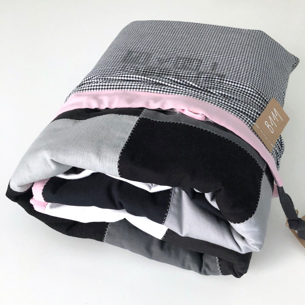 the blocks are a mix of natural materials backet with a cotton cloth and filled    with a batting for comfort and warmth (the batting is made from recycled PET bottles and plastic packaging ♻️)