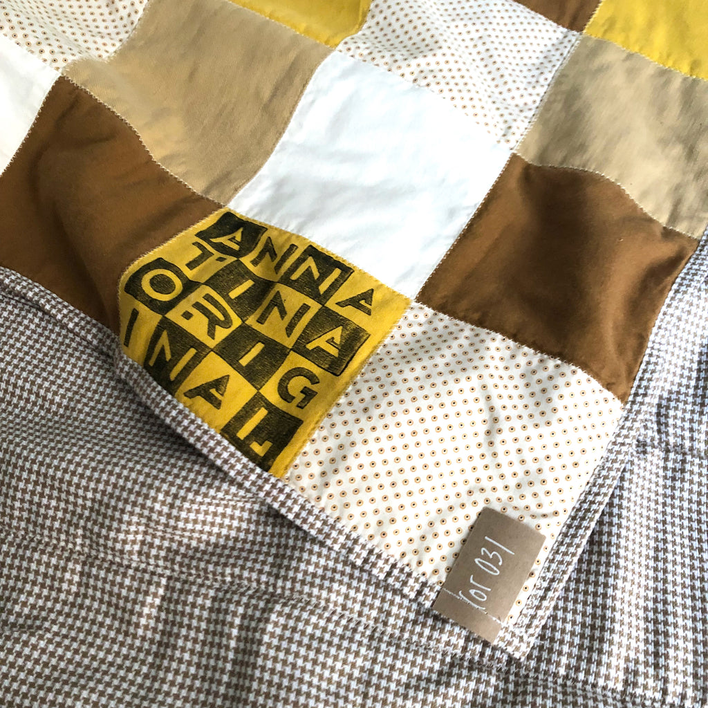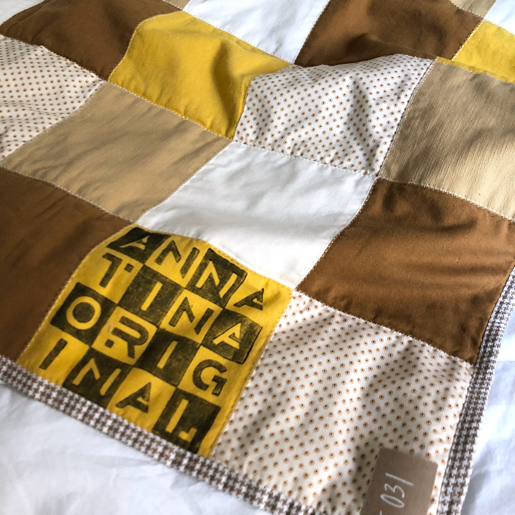 the blocks are a mix of natural materials backed with a cotton cloth and filled    with a batting for comfort and warmth (the batting is made from recycled PET bottles and plastic packaging ♻️)