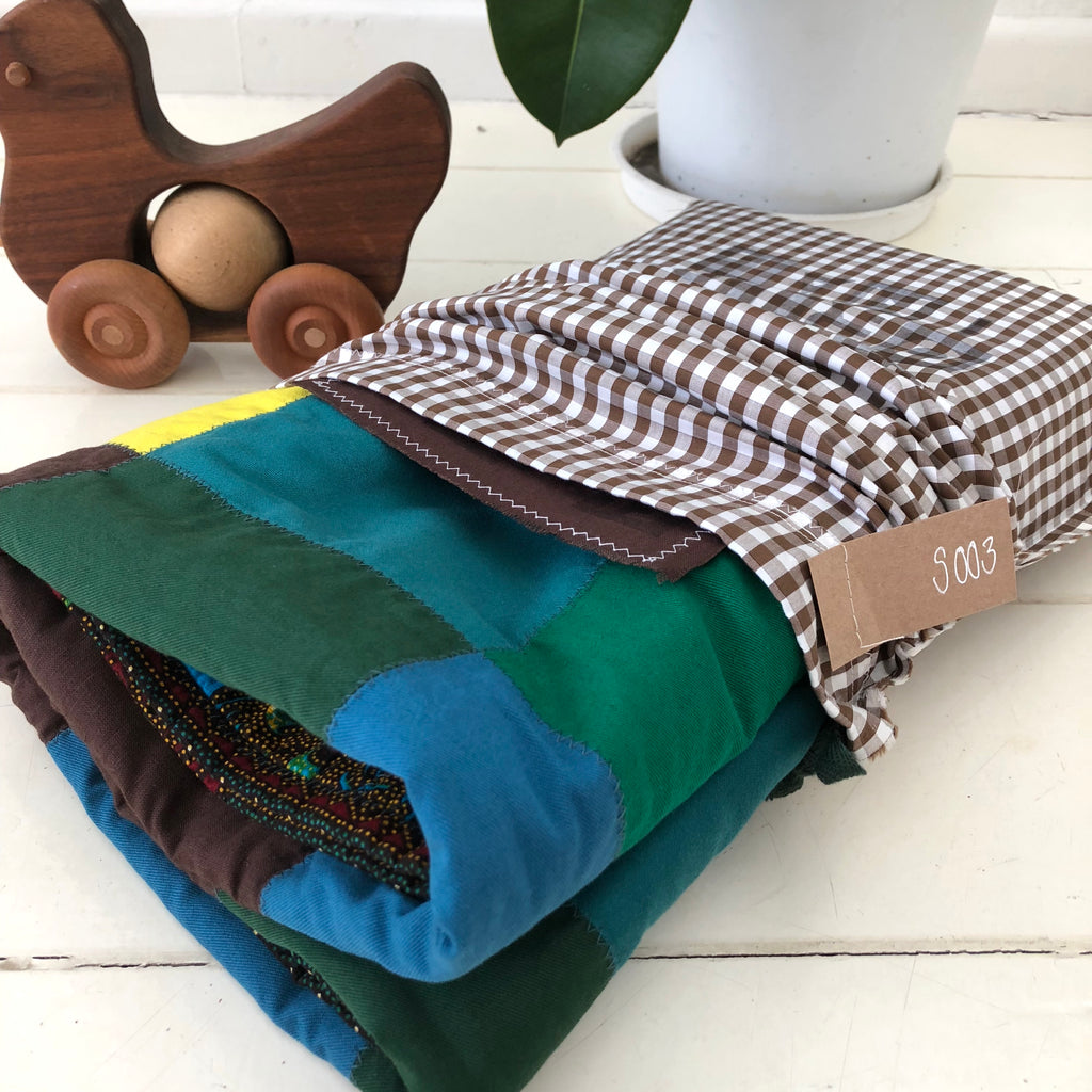 ★ the blocks are a mix of natural materials, the back is a cotton cloth and inside is a batting for comfort and warmth