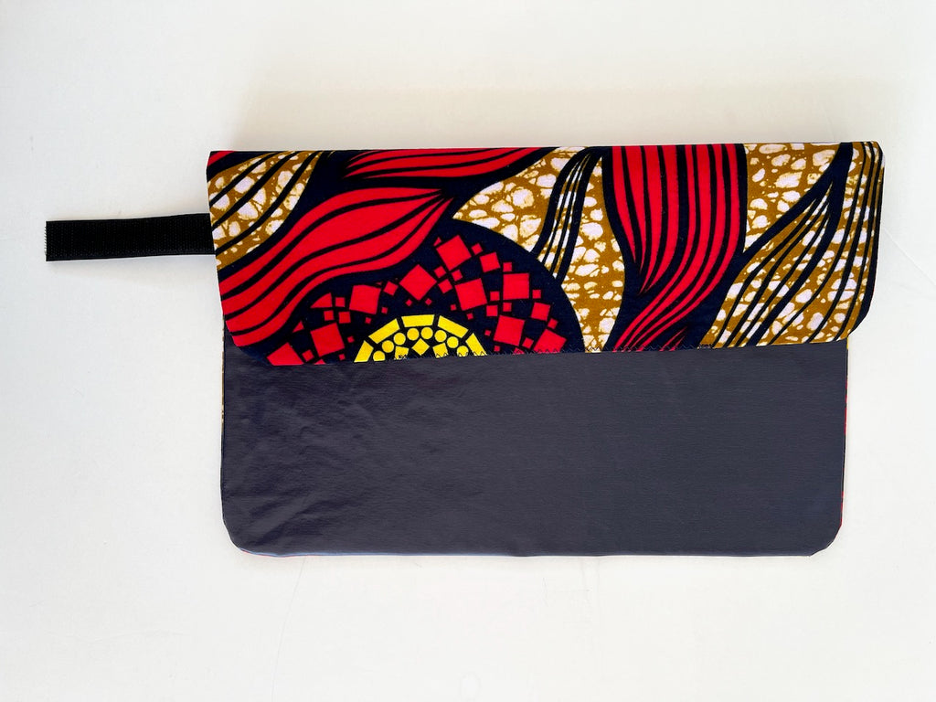 ★ the outside fabric is a cotton wax print lined with a wipeable PVC cloth