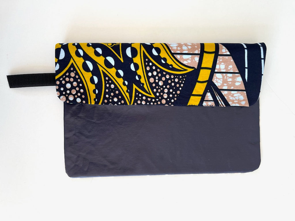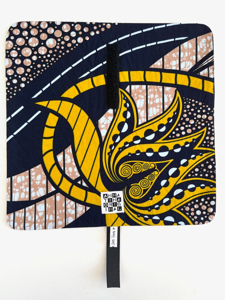 ★ the outside fabric is a cotton wax print lined with a wipeable PVC cloth